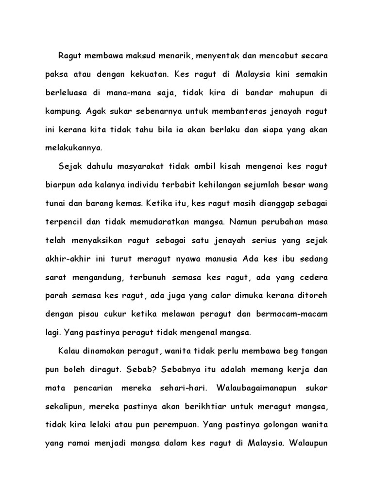 Kes ragut yang di percayai baru sahaja berlaku di johor bahru, malaysia. Ketua pengarah kesihatan itu berkata ia menjadikan jumlah keseluruhan kes ialah 505, 115. Hal ini disebabkan oleh kepadatan penduduk dan terdapat golongan tuntasnya, banyak langkah yang boleh dilaksanakan bagi menangani jenayah ragut di malaysia. Tiga termasuk wanita ditahan terlibat kes ragut sekitar kl, selangor. Yang ringgit malaysia adalah mata uang dalam malaysia (saya, mys).