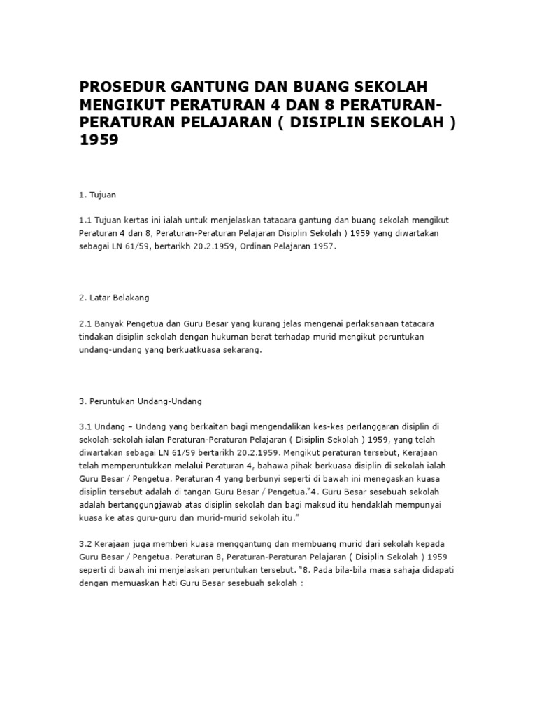 Panduan tatacara disiplin sekolah untuk pengetua, guru besar, guru disiplin dan guru sekolah tema kesalahan pekeliling tindakan/hukuman. Apakah prosedur pemeriksaan oknum kepolisian yang menggunakan narkotika itu sama dengan pemeriksaan tindak pidana narkotika bagi masyarakat biasa? Hukuman yang betul ke atas pelajar. Menurut gary dessler (2003:285), pengertian disiplin adalah suatu prosedur yang mengoreksi atau menghukum seseorang bahawan karena melanggaru aturan atau prosedur. Carta aliran prosedur tindakan disiplin buang sekolah.